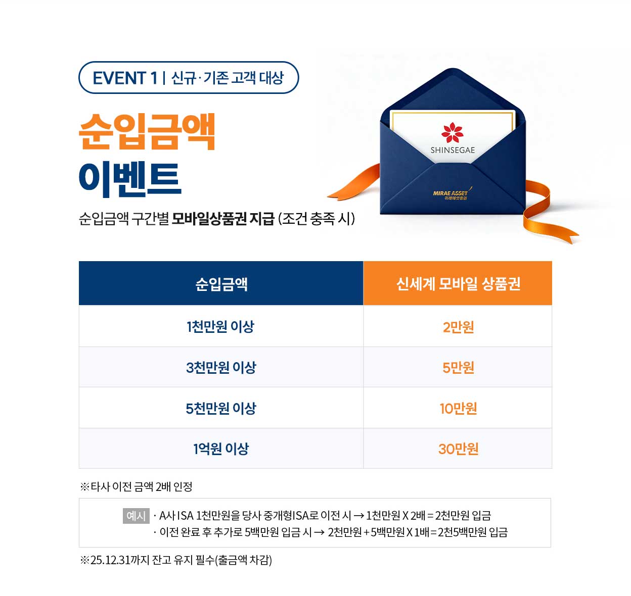 - ㆍ타사ISA를 당사로 이전 시 이벤트 기간 내 이전 완료된 금액만 인정됩니다.