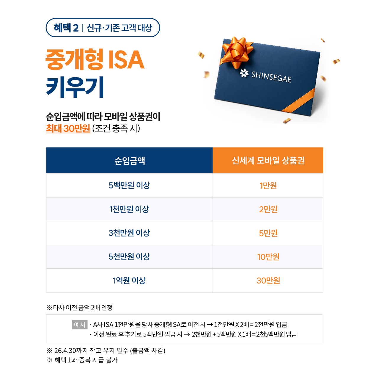 - ㆍ타사ISA를 당사로 이전 시 이벤트 기간 내 이전 완료된 금액만 인정됩니다.