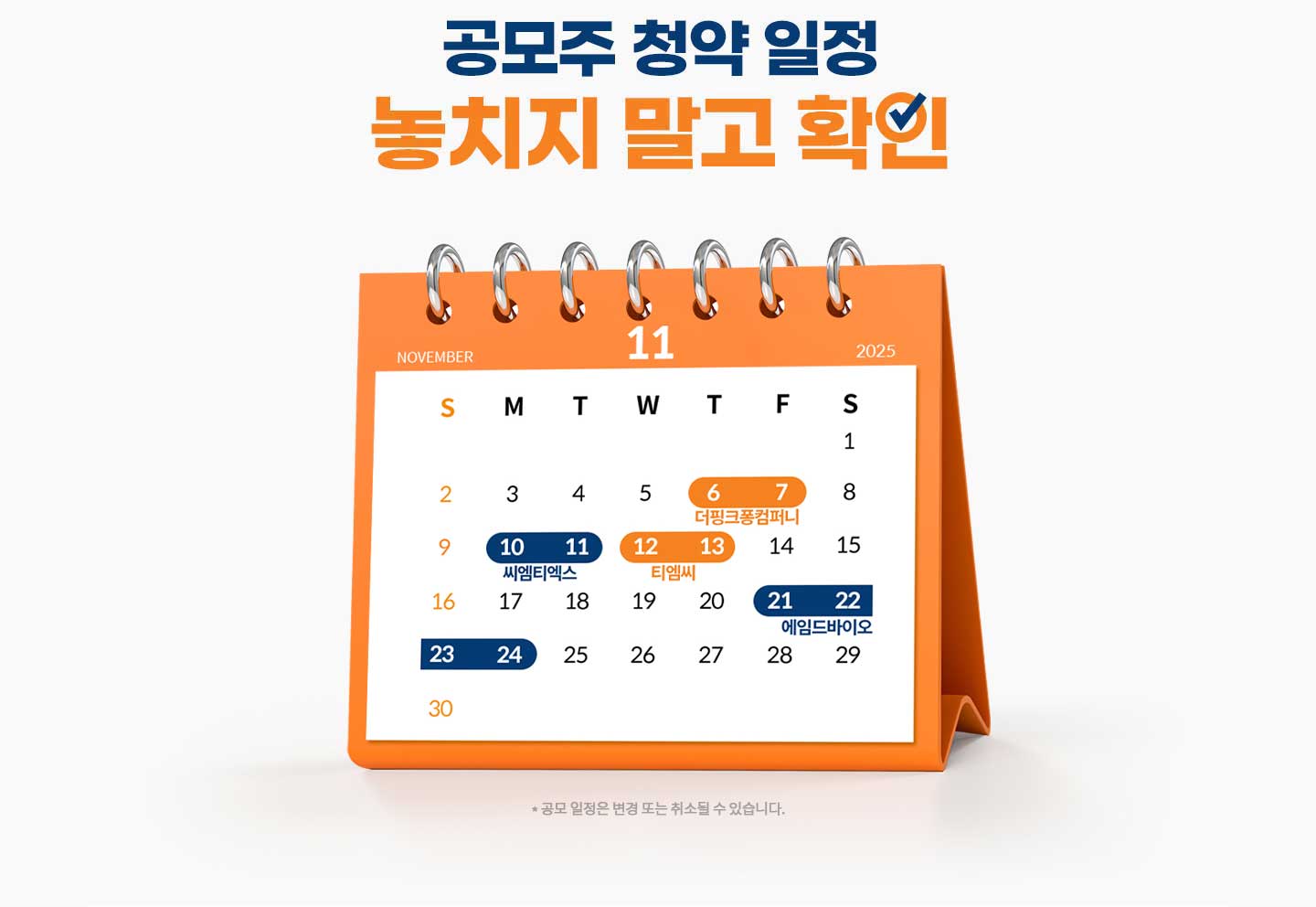 - · [공모증권] IPO공모증권은 상장초기 가격변동성이 크며, 상장 후 주가가 공모가격을 하회하여 투자손실이 크게 발생할 수 있습니다.